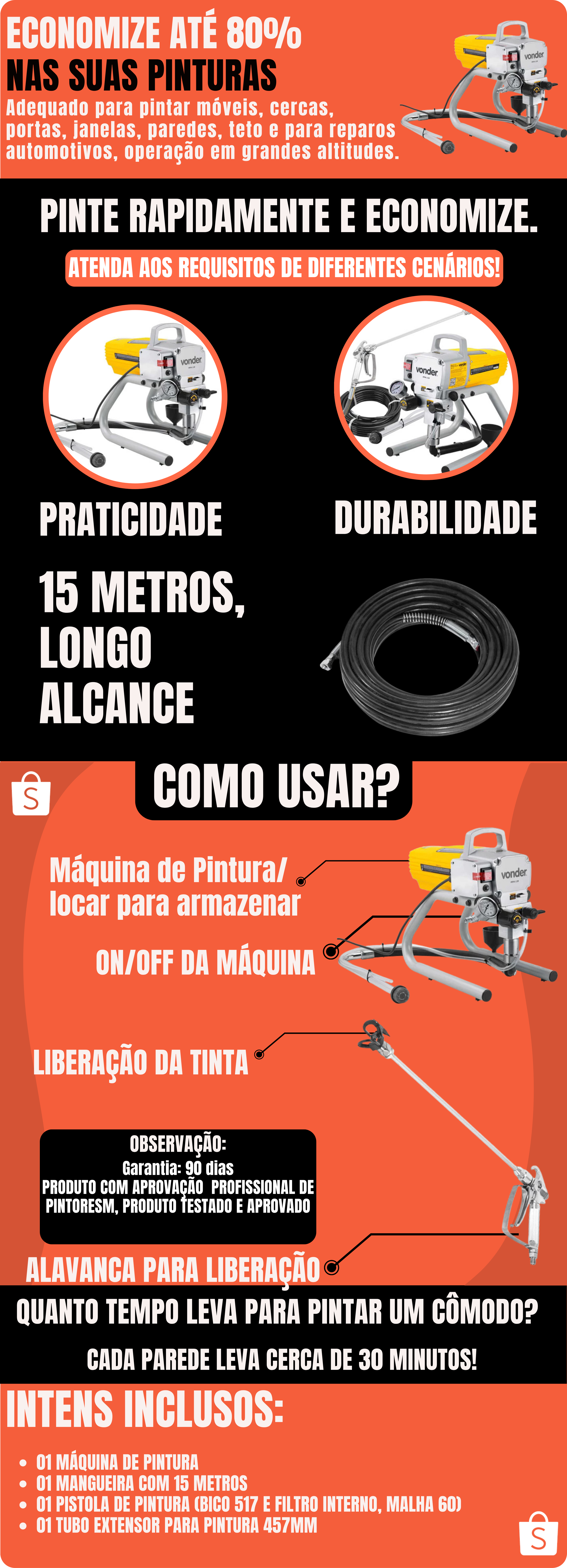 Máquina de Pintura Airless Profissional 900W Para Látex PU Esmalte com Extensor Vonder